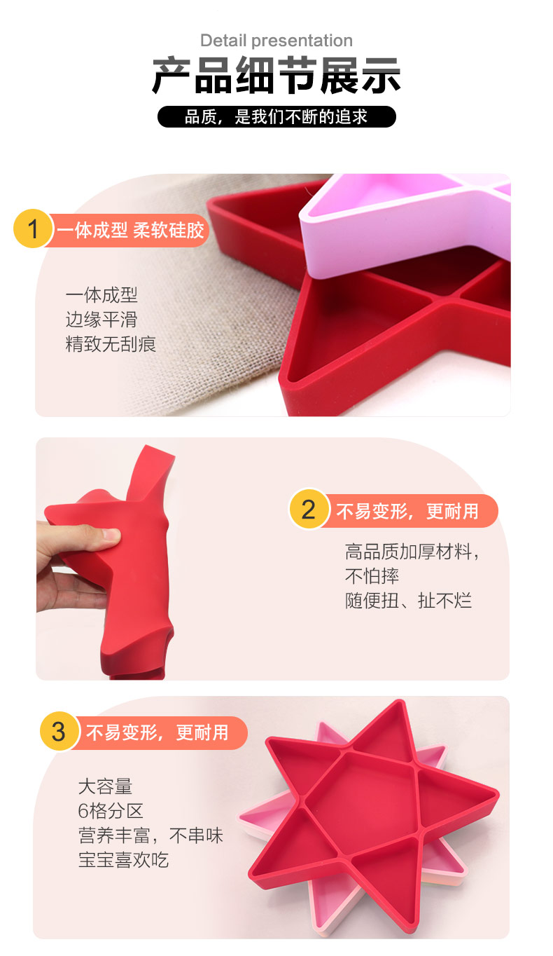 您的位置:首頁(yè) > 產(chǎn)品中心 > 硅膠嬰童用品 > 硅膠碗 > 硅膠兒童五角形狀餐盤 嬰兒輔食碗 廠家直銷可定制