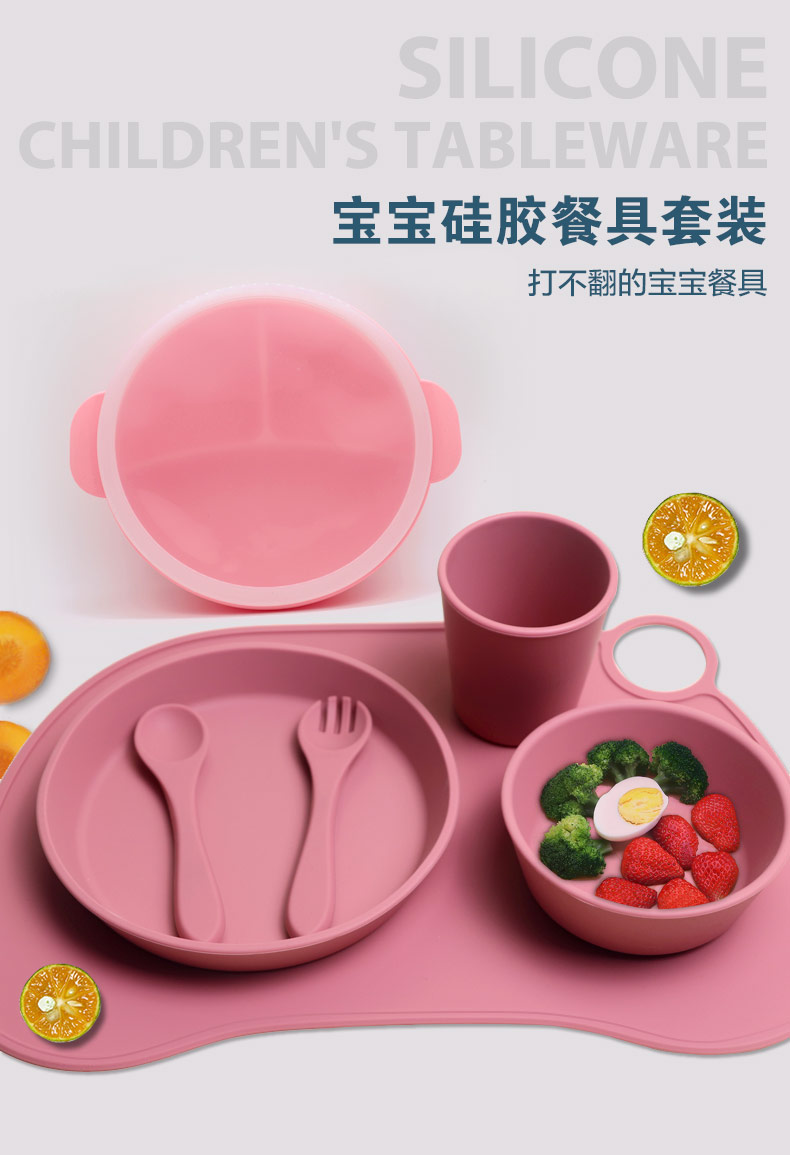 您的位置:首頁 > 產(chǎn)品中心 > 硅膠嬰童用品 > 硅膠碗 > 批發(fā)食品級硅膠兒童餐具寶寶喂食硅膠餐盤碗杯子餐墊 套裝