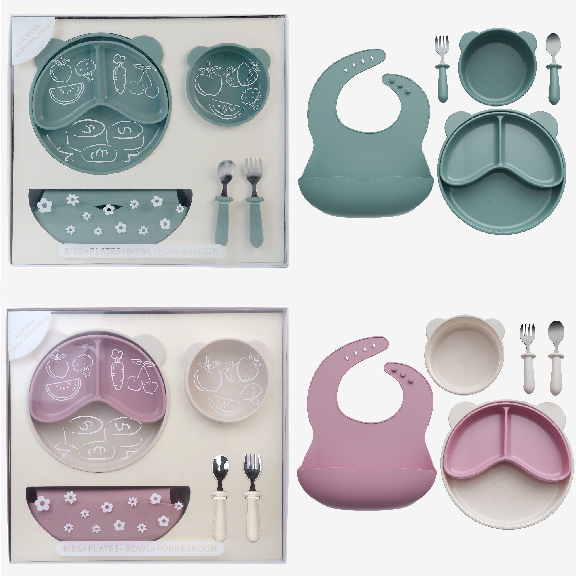 6件套分隔盤母嬰喂食套裝母嬰分格嬰兒硅膠餐盤