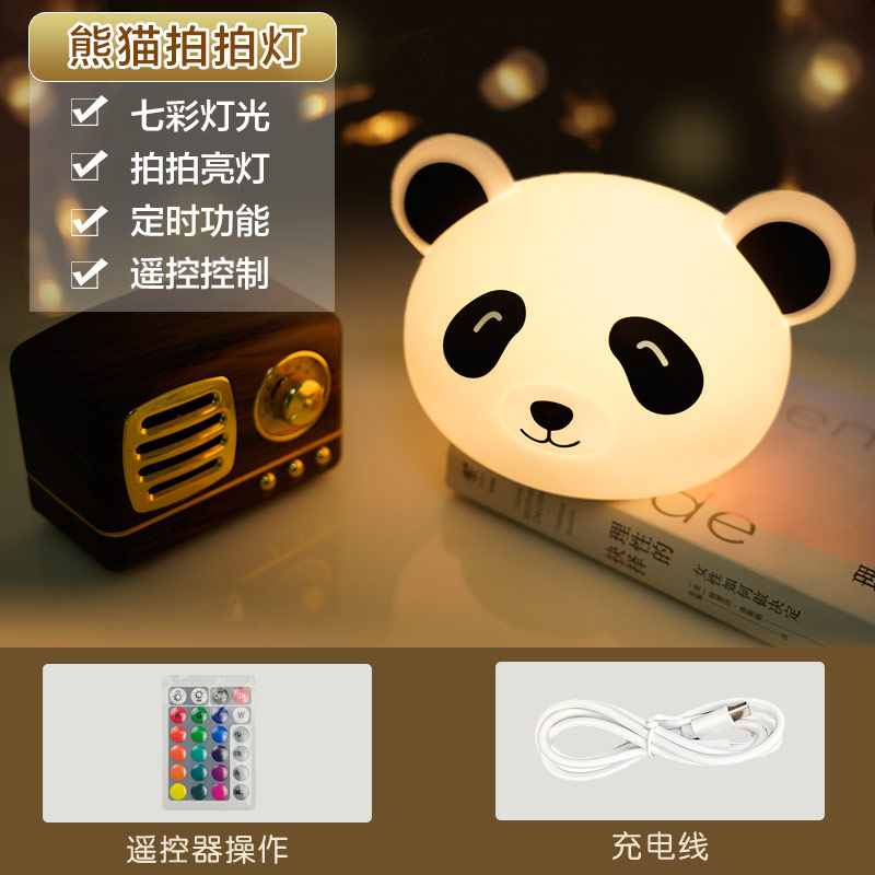 熊貓拍拍燈 創(chuàng)意夜燈硅膠卡通發(fā)光玩具充電拍拍燈 可加印LOGO批發(fā)