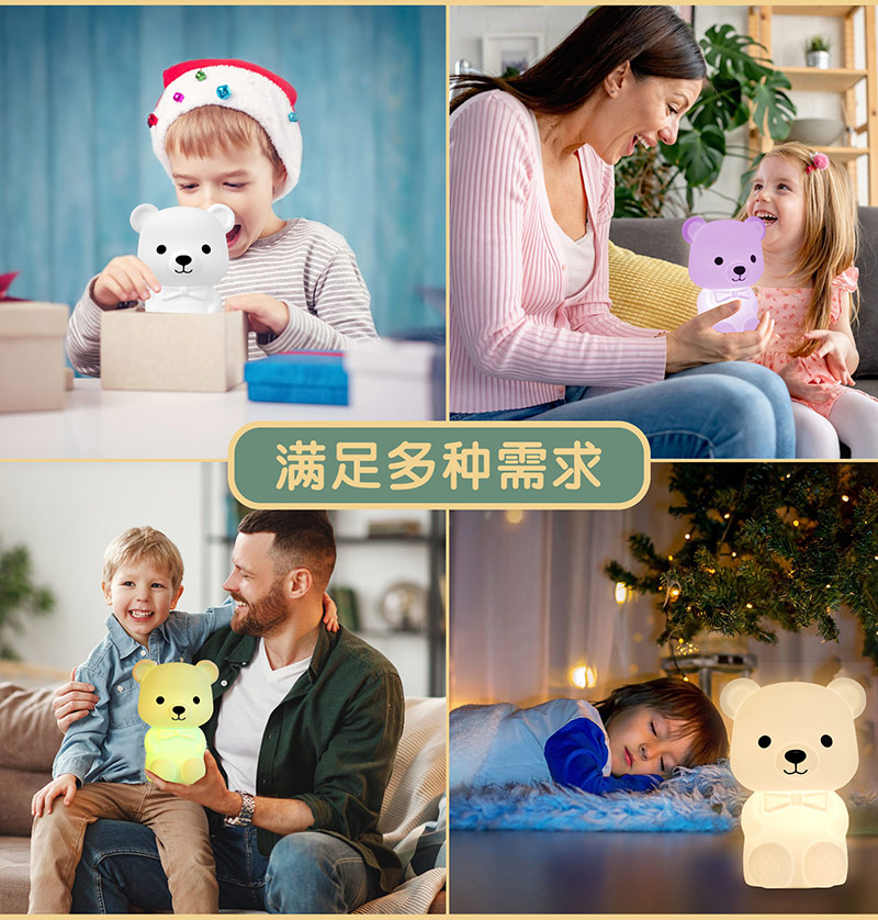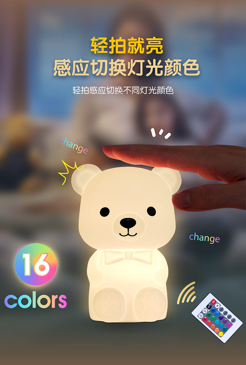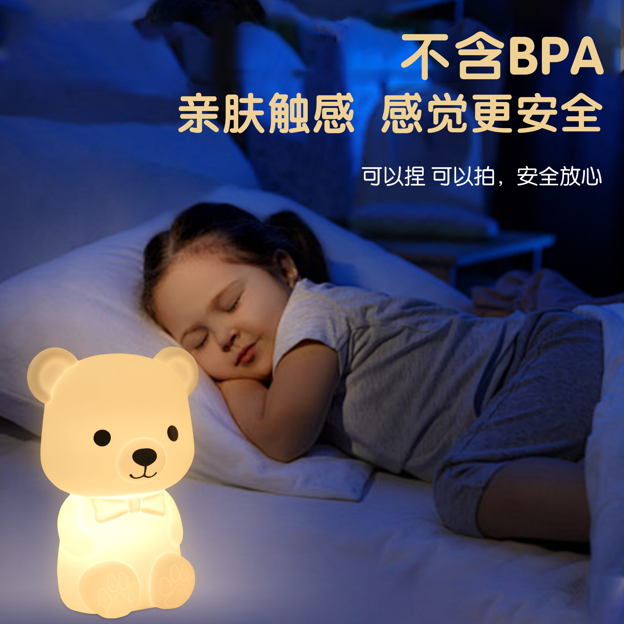 泰迪熊硅膠臥室氛圍床頭伴睡小夜燈拍拍燈廠家跨境批發(fā)